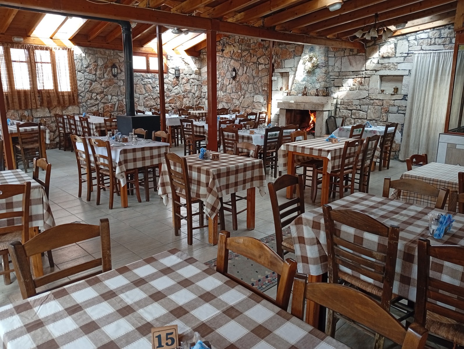 In a warm and peaceful environment, we invite you to enjoy our fresh salads, traditional appetizers and home-cooked dishes, pies, and grilled specialties—by the fireplace in winter and in the cool breeze of Helmos in summer.